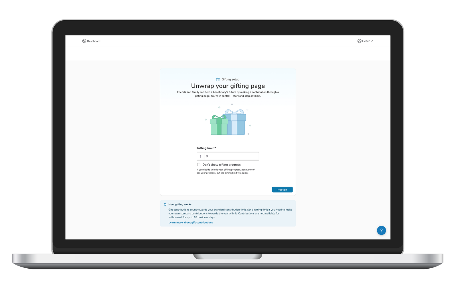 For easier gifting, family and friends can create a gifting profile to save their contact and banking information or set up recurring gifts to regularly contribute at specific times.